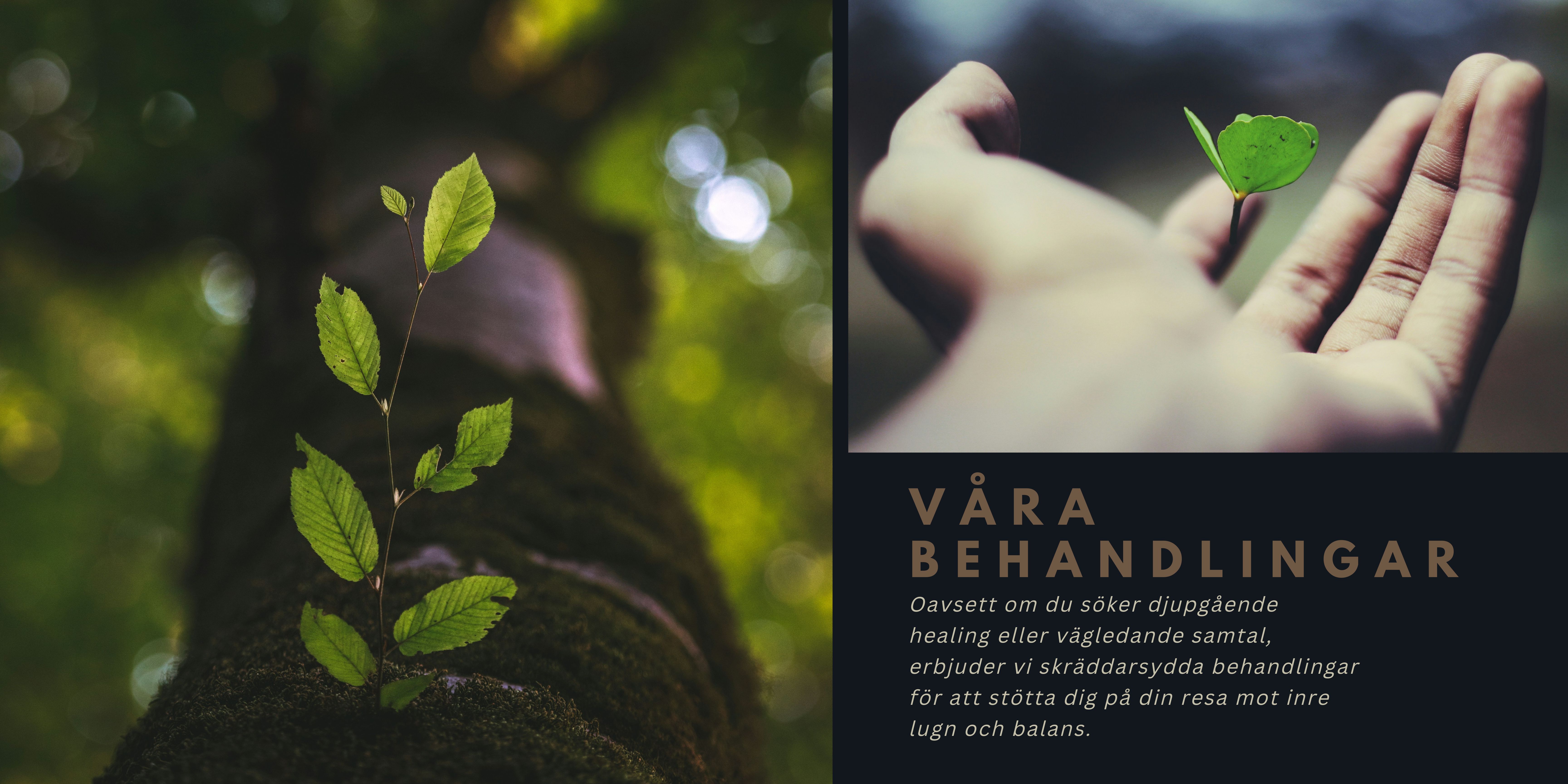 I dagens samhälle brukar allt snurra väldigt fort, och vi tappar kontakten med vårt inre, vårt Jag. Det vi vill erbjuda är allt från en stund av avkoppling i trädgården, till behandlingar och utbildningar. Helt beroende på vad just DU behöver. Vill du ha en stund för dig själv finns vår trädgård med olika rum, att bara försvinna bort i en stund. från vardagens stress. Gården ligger på en kulle med vidunderlig utsikt, i sydöst sträcker böljande fält ut sig, och bakom oss ligger milsvida skogar. Vi erbjuder också utbildningar och tar emot för behandlingar i Hyposyntes terapi, healing i Usui Shiki Ryoho, Hypnos, samtalsterapi och meditationer
